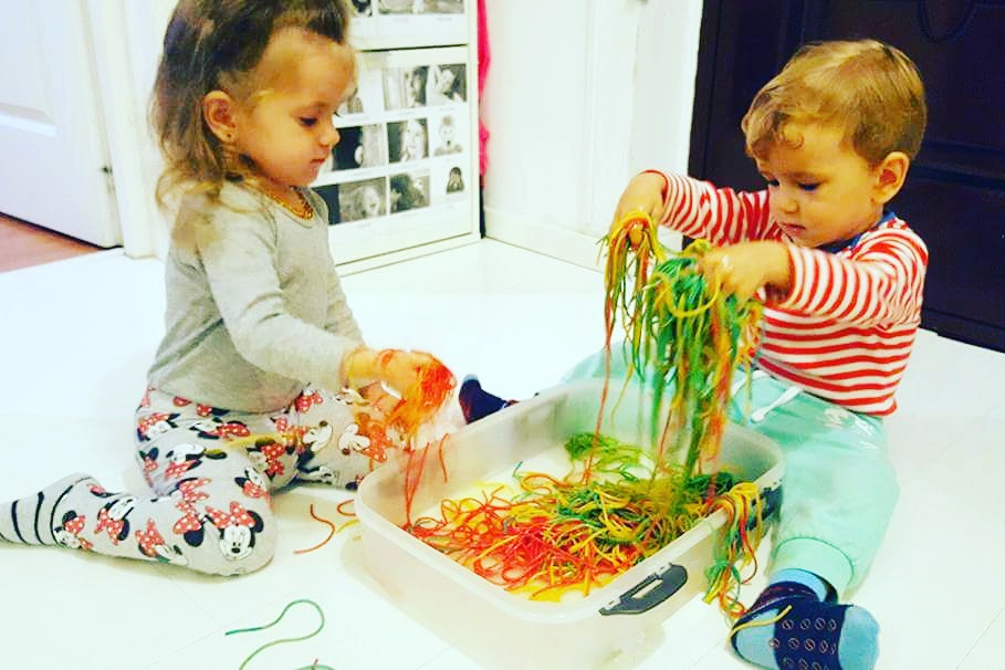 activitati copii acasaactivitati montessoriactivitati pentru bebelusijoc senzorialspaghetti colorat