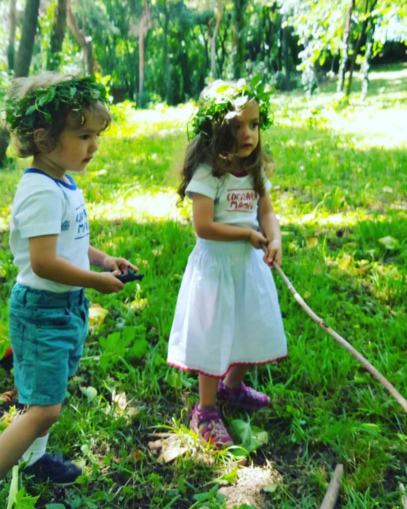 Cu fluturi, cu rochița rândunicii, cu greieri și conuri de brad, cu zâne mici și veverițe.